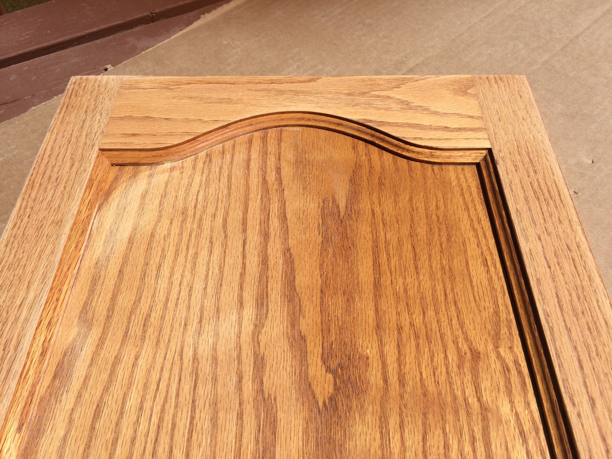 Here’s a look at the front of a cabinet door. The left side has been sanded and the right side has not.