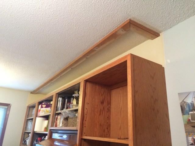 If you have read my previous post, you already know my dilemma with the top. I spent hours trying to figure out how to make it look good. I had almost given up hope when I stumbled across this wonderful blog post that had a perfect and beautiful solution to my problem. Go see what an amazing job this blogger did in her kitchen. Follow the the instructions on her blog if you want yours to look like hers: http://www.remodelandolacasa.com/2012/01/closing-space-above-kitchen-cabinets.html?m=1